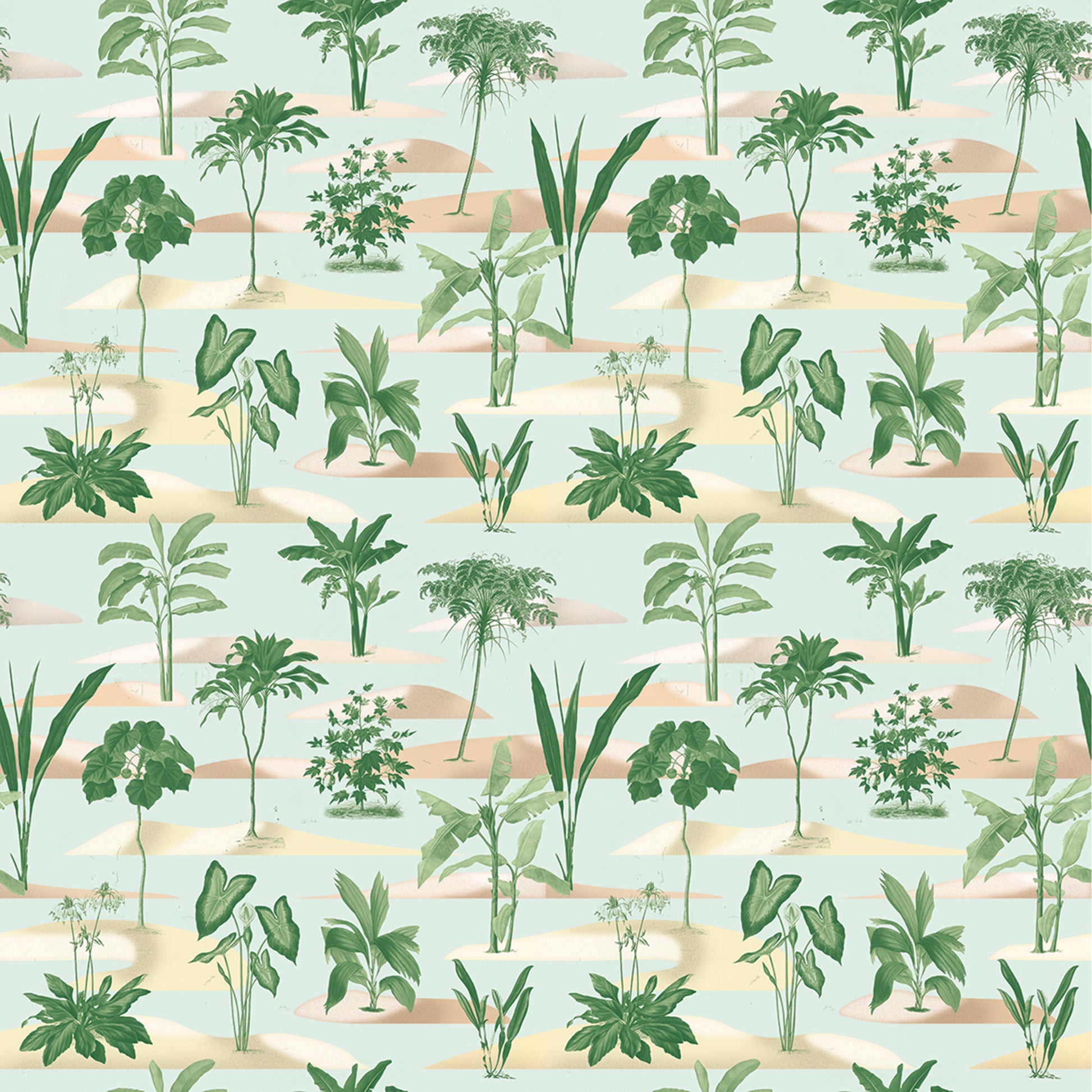 Astonishing and fascinating is the lushness, the abundance of the oasis, centered in a hostile terrain which bears the name of desert. Plants and trees draw the energy of life in these antithetical conditions, and in this wallpaper model shape an exotic canvas, rich in details and subtle nuances of color. Oasis is an organic composition, full of softness and simplicity, which carries the viewer between aridity and abundance, following voluptuous fiery breezes enriched with bewitching and unknown perfumes.