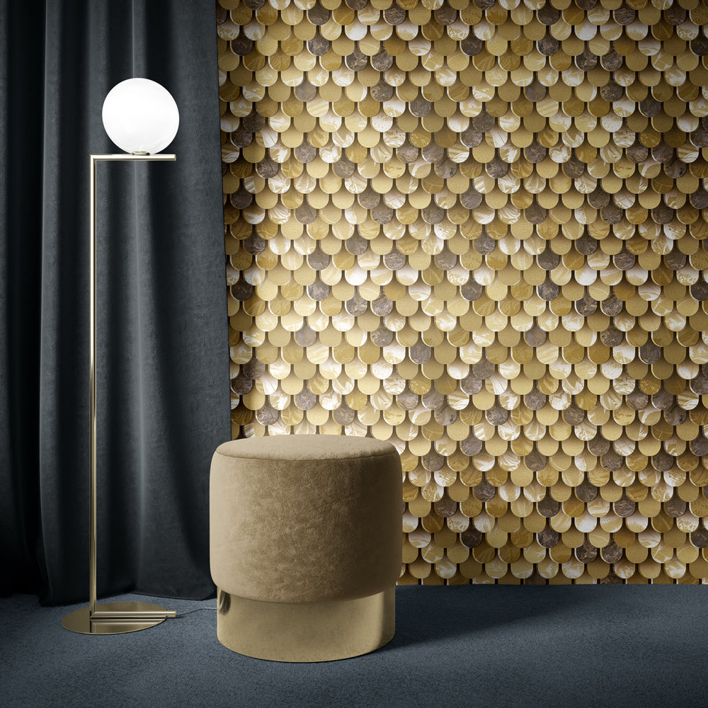 Whether we see the magical reflection of the scales of the fish that inhabit our seas, or a collection of the nuances of the woods, plants, flowers and leaves that populate our forests, Ornaments is an ode to the richness of nature. This fast-paced wallpaper takes a step away from more traditional representations of nature, preferring to display samples of it. Extracted from their context, they offer a more symbolic interpretation which opens the field of possibilities, as well as that of imagination and inspiration.