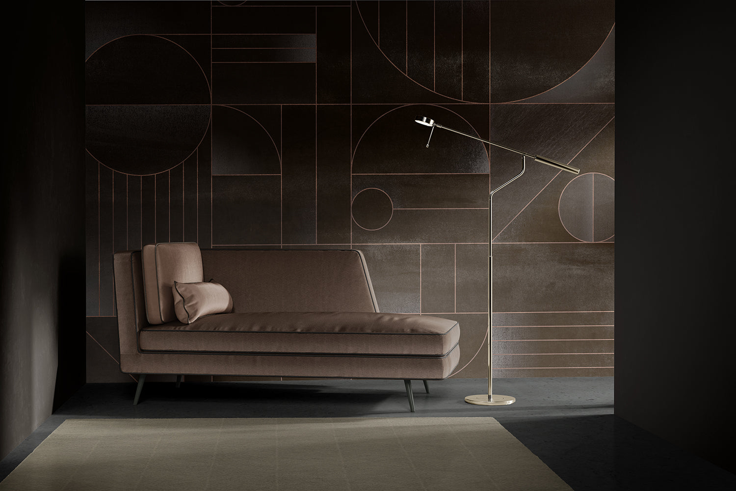 This contemporary design reproduction takes up the codes of the Art Deco style in a kaleidoscope of patterns alternating curves and geometric lines enhanced by a nuanced color gradient.