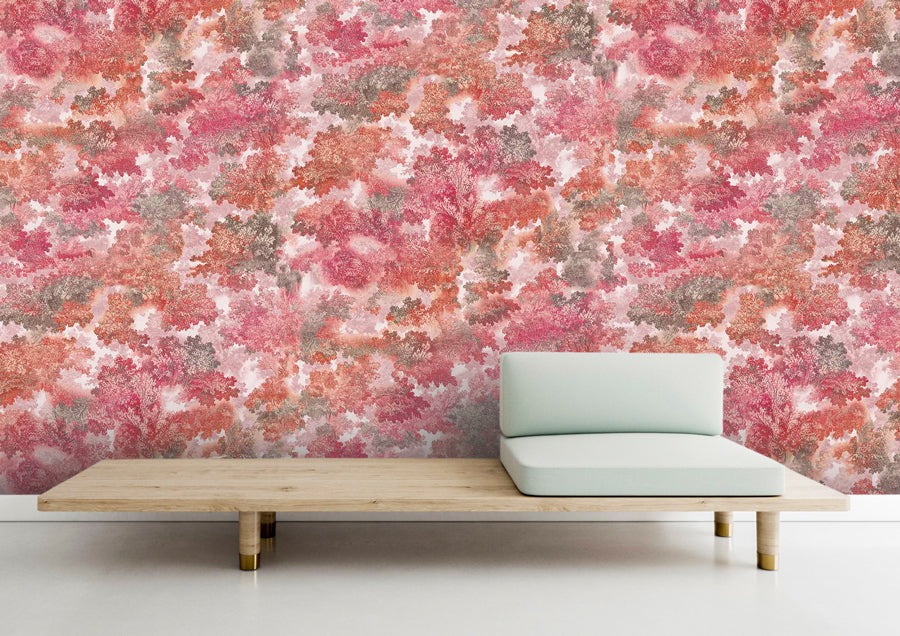 Vegetation, undergrowth, leaves, the mist of a fertile forest, with a mysterious atmosphere, where the density and gradients of colors create an atmosphere rich in textures and nuances inviting a total immersion in nature. This pattern brings a touch of serenity and vitality to any space, creating a relaxing and inspiring atmosphere.