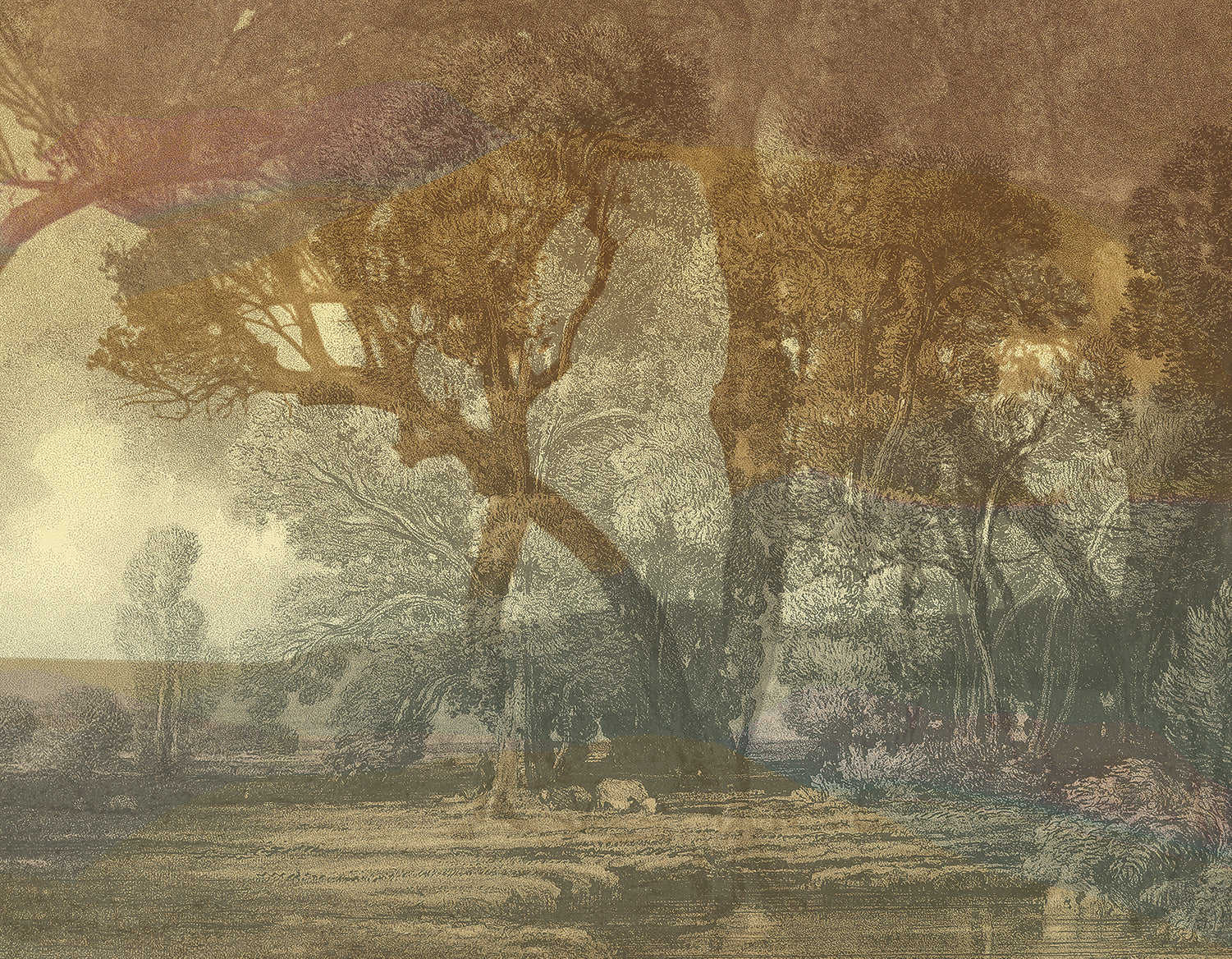 The tree, source of life, occupies here the foreground of this panoramic entitled The awakening of the forest. This nebulous composition pays homage to the natural monument that are the trees, which reign with presence over the natural expanses that we travel with humility. The eye wanders between the various intertwined elements, between superimposition and transparency, without ever completely getting lost. The awakening of the forest comes in two versions, sometimes cold, sometimes warm, which reveal different reading levels, making this model an infinite meditative source.