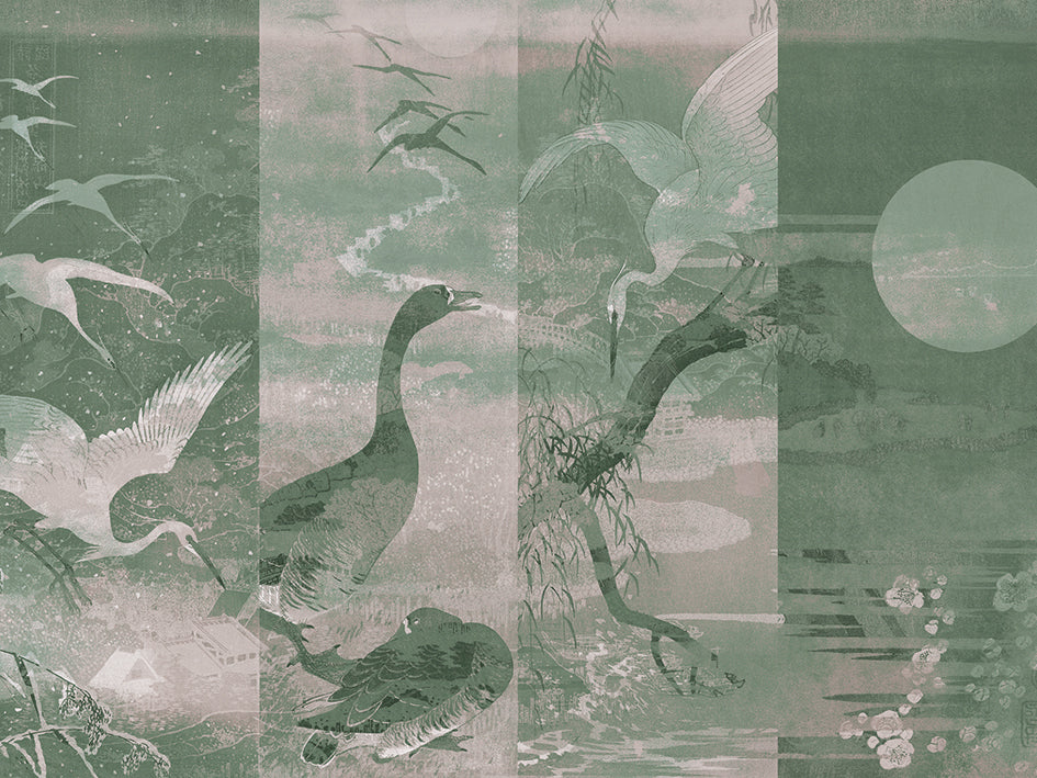 Inspired by the legendary beauty of the majestic Chinese Lake Quinsai (now Hangzhou), this delicate creation offers an aerial view of the West Lake in which a flight of cranes rubs shoulders with wild geese, under the peaceful eye of a full silver moon inviting calm and contemplation.