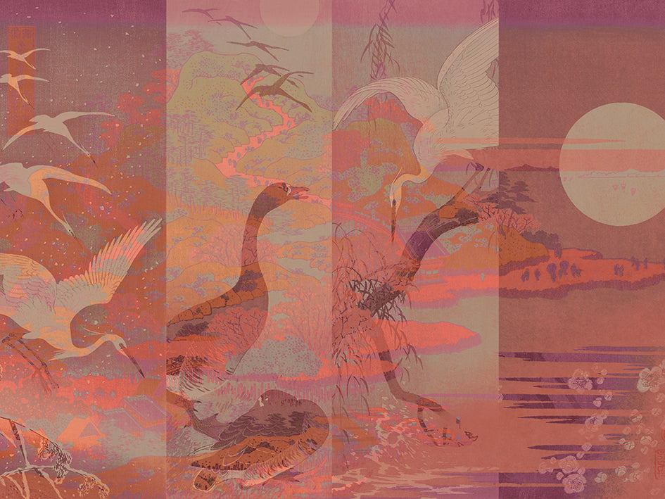 Inspired by the legendary beauty of the majestic Chinese Lake Quinsai (now Hangzhou), this delicate creation offers an aerial view of the West Lake in which a flight of cranes rubs shoulders with wild geese, under the peaceful eye of a full silver moon inviting calm and contemplation.