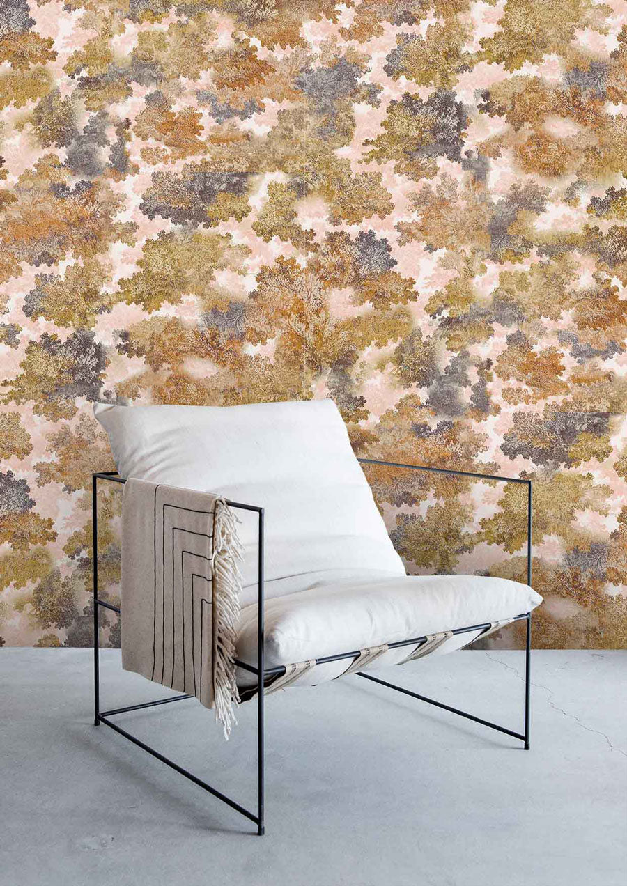Une végétation, un sous-bois, des feuilles, la brume d’une forêt fertile, à l'atmosphère mystérieuse, où la densité et les dégradés de couleurs crées une ambiance riche en textures et en nuances invitant à une immersion totale dans la nature. Ce motif apporte une touche de sérénité et de vitalité à tout espace, créant une atmosphère relaxante et inspirante.