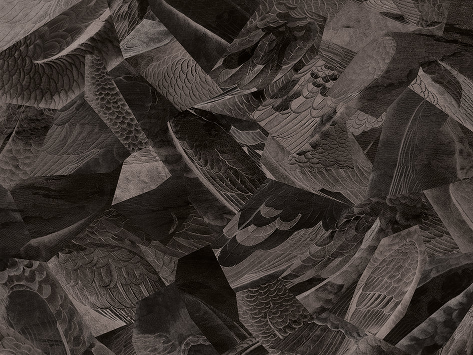 Comme un bruissement d’ailes, Plumages est une fresque délicate et moderne sur laquelle les plumages d’oiseaux se mêlent les uns aux autres. La juxtaposition des couleurs, le détail des plumes rend hommage à notre fascination pour l’oiseau, entre observation et imaginaire.